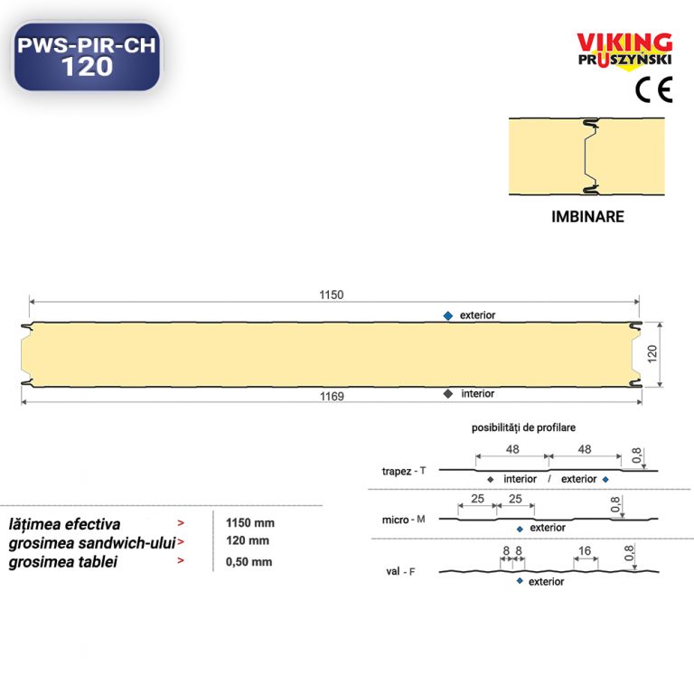 Dedicat utilizării ca pereți despărțitori exteriori, învelitori de tavan (cu tropice) și pereți interiori în instalații de răcire și congelatoare.